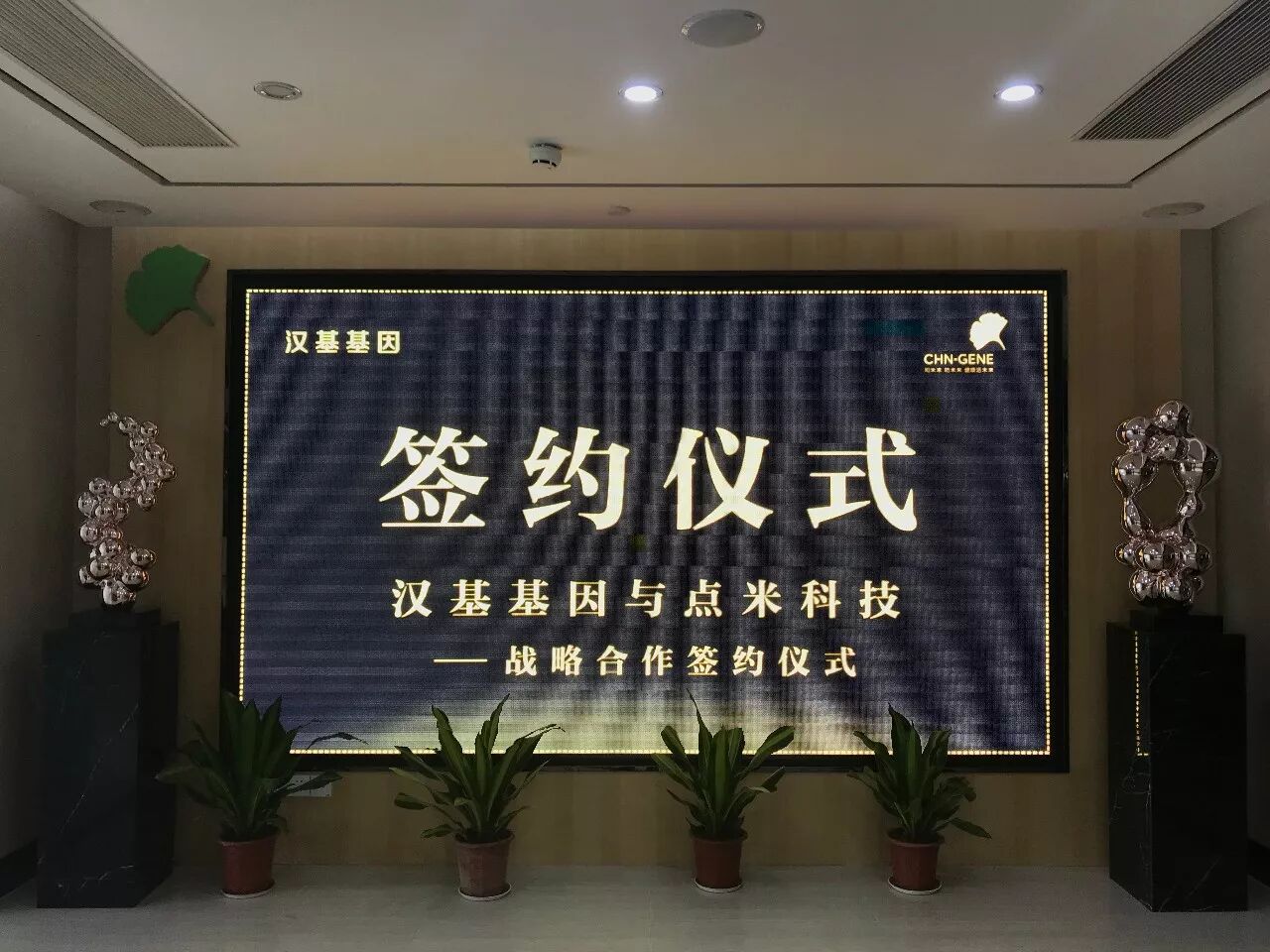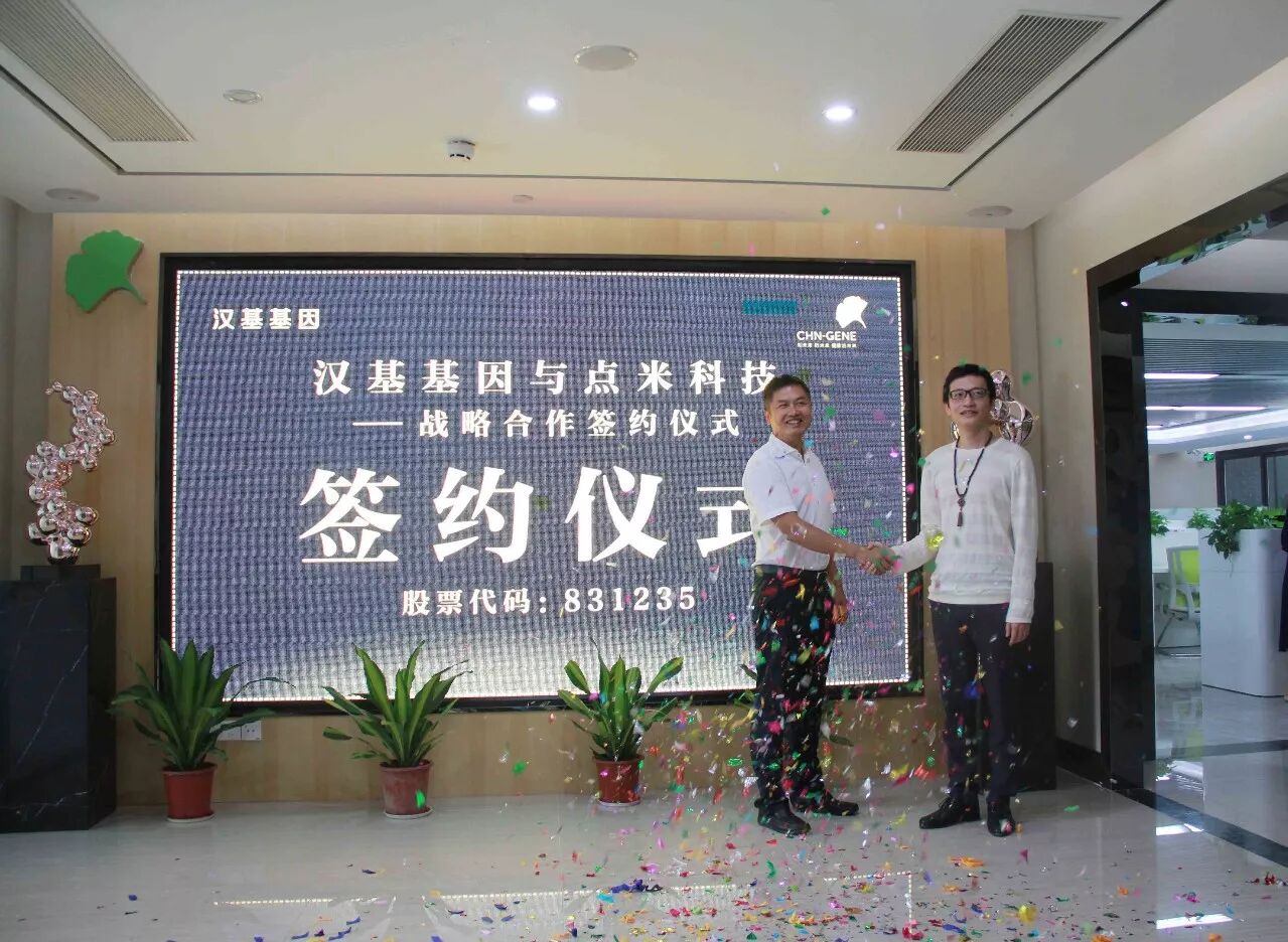 11月3日,汉基基因与点米科技在我司签署战略合作协议,双方就基因测序服务展开合作,携手打造大健康模式新格局。签约仪式现场,点米科技执行董事龚劲松等一行人、汉基基因总裁杨政楠,副总裁陈相宇出席参加。